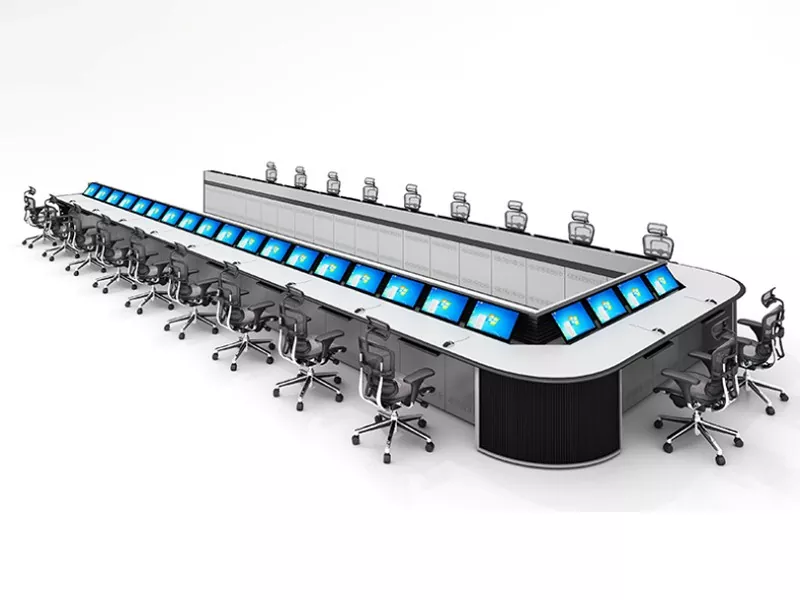 దీని U-ఆకారపు నిర్మాణం వీడియో ఫీడ్లు, వ్యాపార డేటా మరియు కమాండ్ ఫీడ్బ్యాక్ల యొక్క కేంద్రీకృత ప్రదర్శనను అనుమతిస్తుంది, వివిధ ప్రాంతాల మధ్య ఆపరేటర్ల యొక్క తరచుగా కదలికను తగ్గిస్తుంది మరియు అత్యవసర ప్రతిస్పందన సామర్థ్యాన్ని మెరుగుపరుస్తుంది.